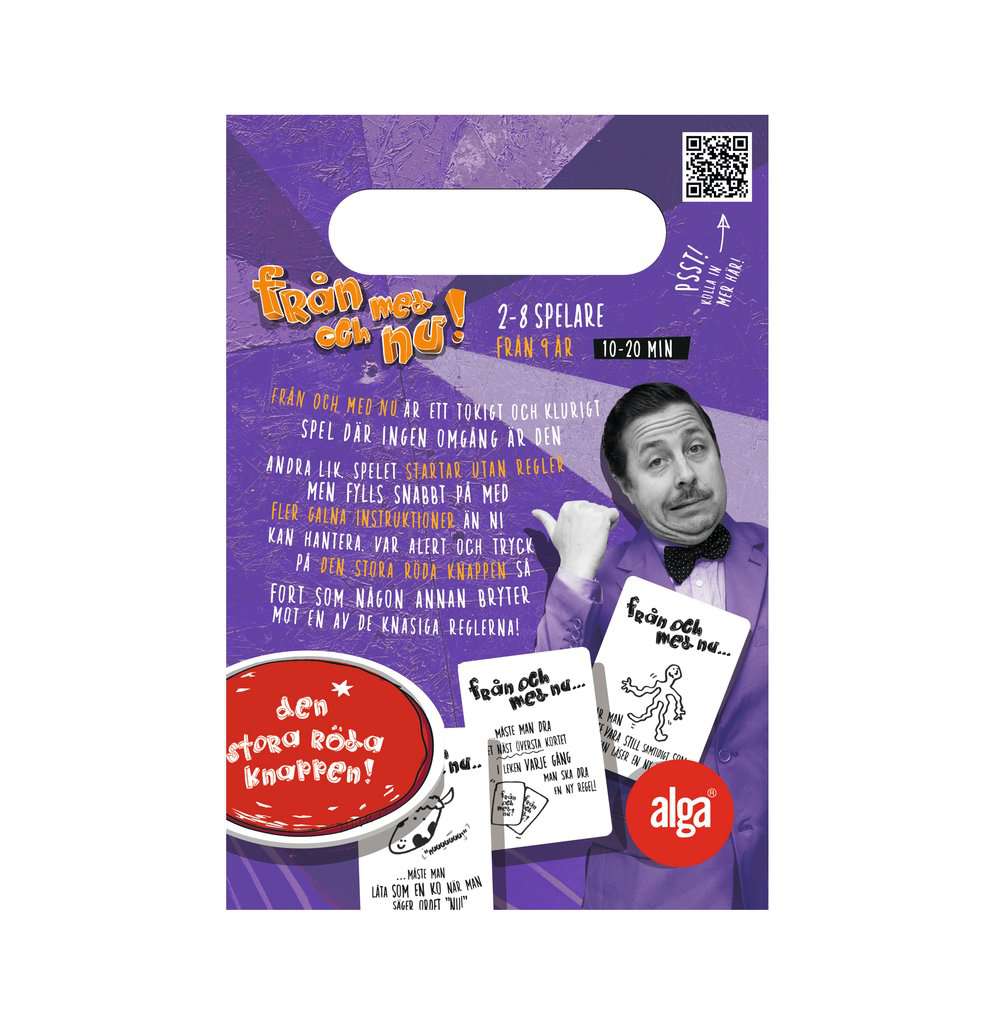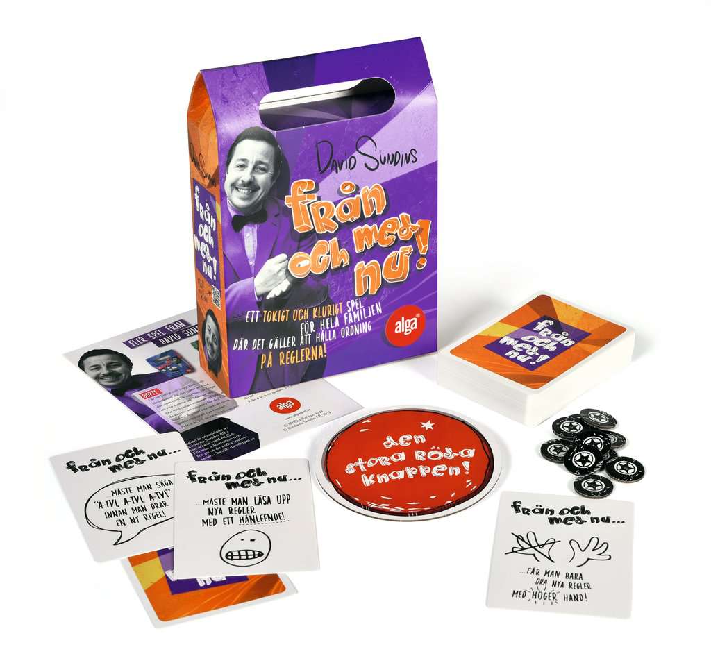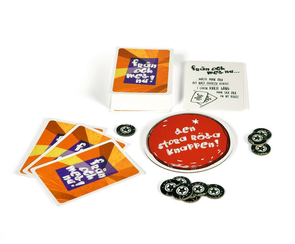 - Från och med nu - är ett tokigt och klurigt spel där ingen omgång är den andra lik. Spelet startar utan regler men fylls snabbt med fler galna instruktioner än ni kan hantera. Var alert och tryck på den stora röda knappen så fort som någon annan bryter mot en av de knasiga reglerna!